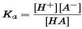 Ka, for a weak acid is defined as the quotient of concentration